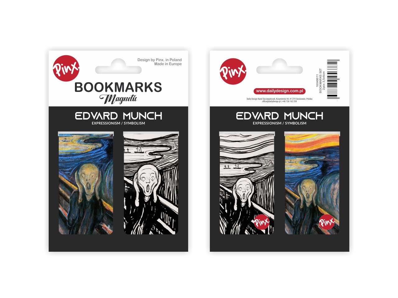 Set of two magnetic bookmarks. Inspired by the work of the great painter Edward Munch "The Scream". Packaged in an aesthetically pleasing foil with cardboard box. Dimensions 3.5x6 cm *2
