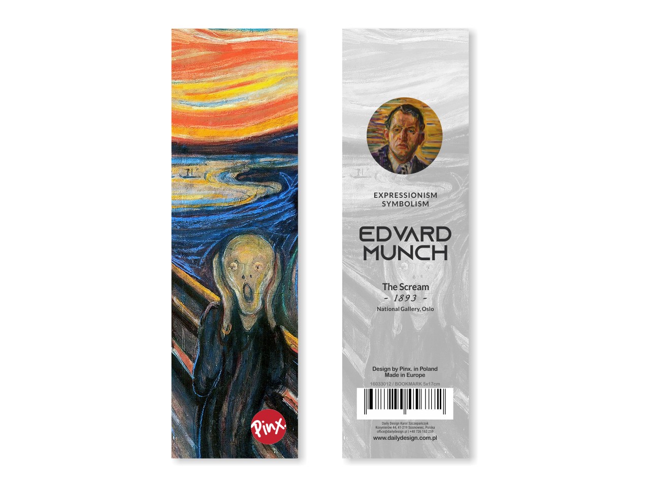 Bookmark inspired by the work of the great painter Edward Munch "The Scream". The bookmark is made of high quality materials, covered with a protective film. The bookmark is packaged in an aesthetically pleasing plastic bag. Dimensions 5x17 cm