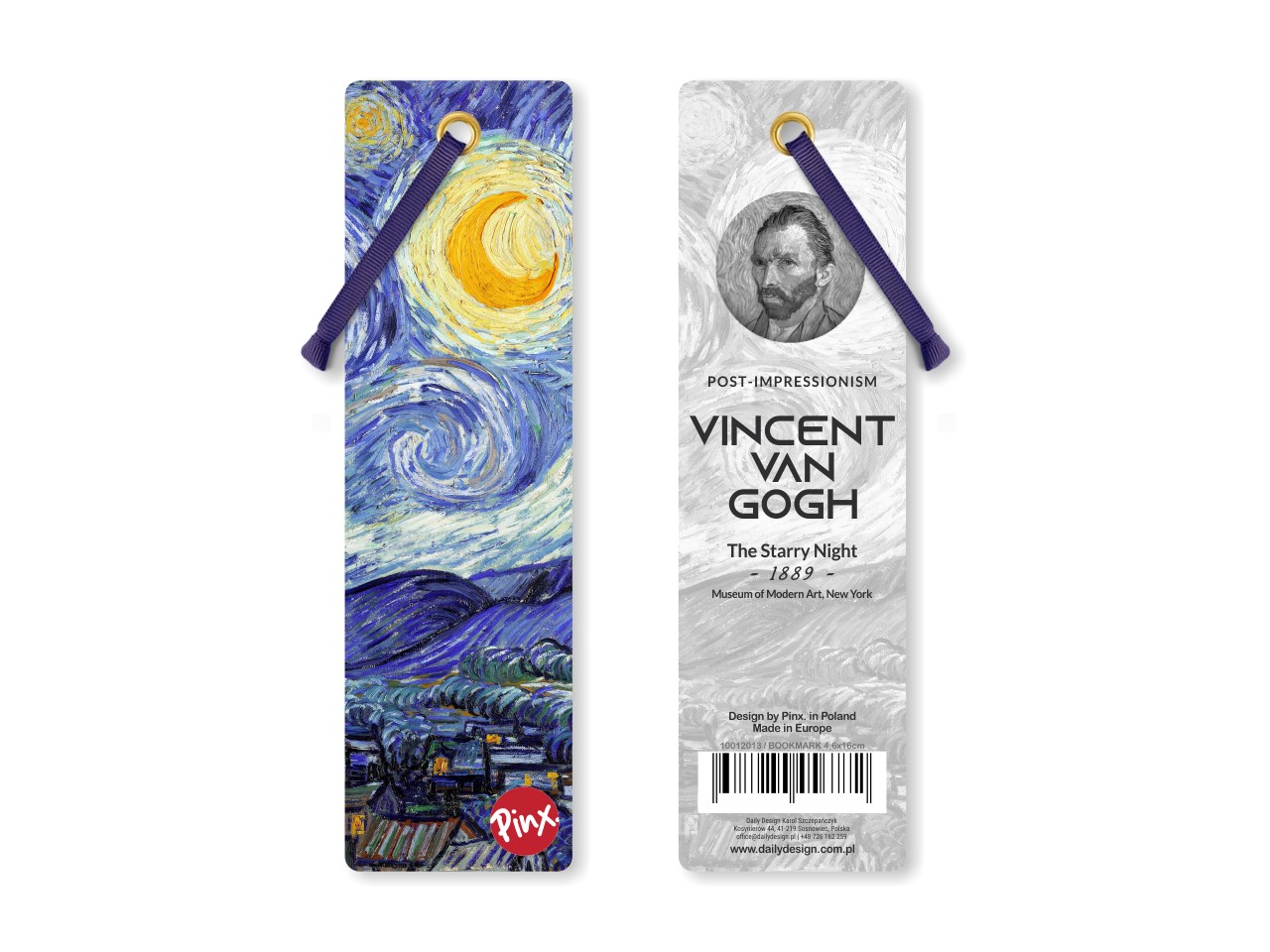 Bookmark inspired by the work of the great painter Vincent Van Gogh "Starry Night". The bookmark is made of high quality materials, covered with a protective film. The bookmark is packaged in an aesthetically pleasing plastic bag. Dimensions 4,5x16 cm