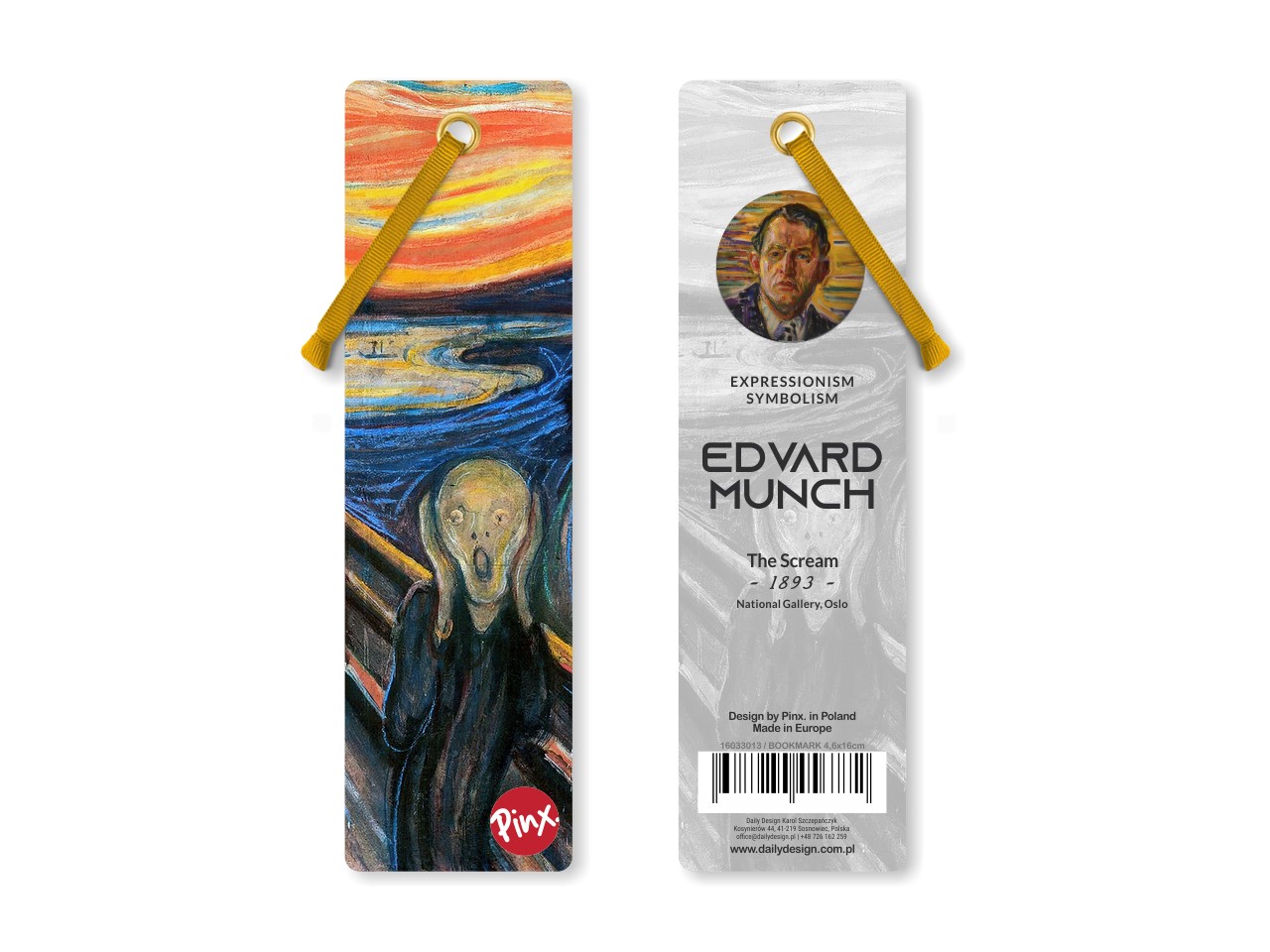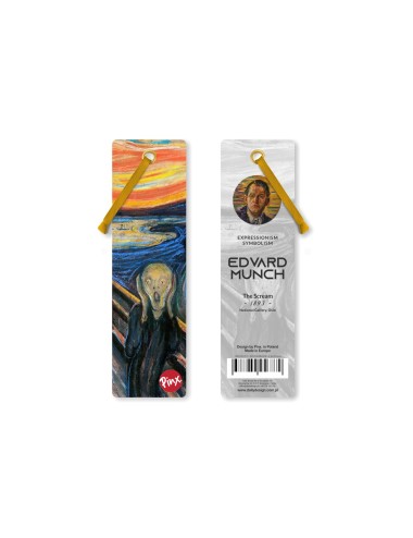 Bookmark inspired by the work of the great painter Edward Munch "The Scream". The bookmark is made of high quality materials, covered with a protective film. The bookmark is packaged in an aesthetically pleasing plastic bag. Dimensions 4,5x16 cm