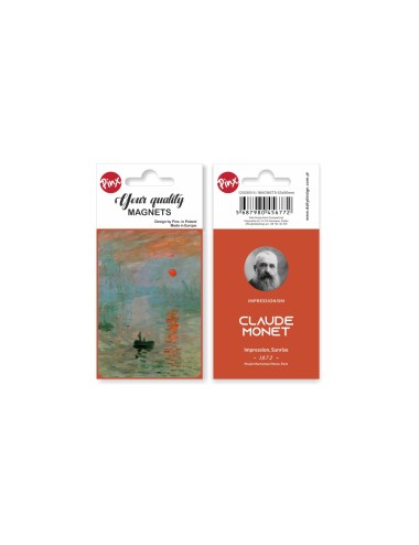 A rectangular magnet inspired by the work of the great painter Claude Monet "Impression, Sunrise". The magnet is made of high quality materials, covered with a protective film. Packaged in an aesthetically pleasing foil with cardboard box. Dimensions 6,3x9 cm