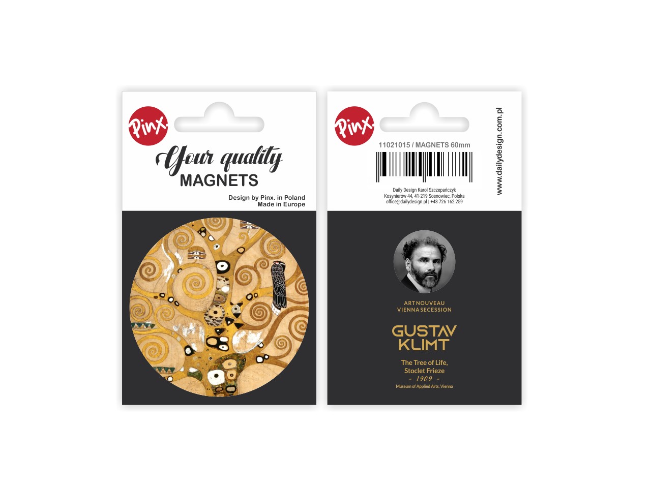 A circular magnet inspired by the work of the great painter Gustav Klimt "The Tree of Life". The magnet is made of high quality materials, covered with a protective film. Packaged in an aesthetically pleasing foil with cardboard box. Dimensions 6,3x9 cm