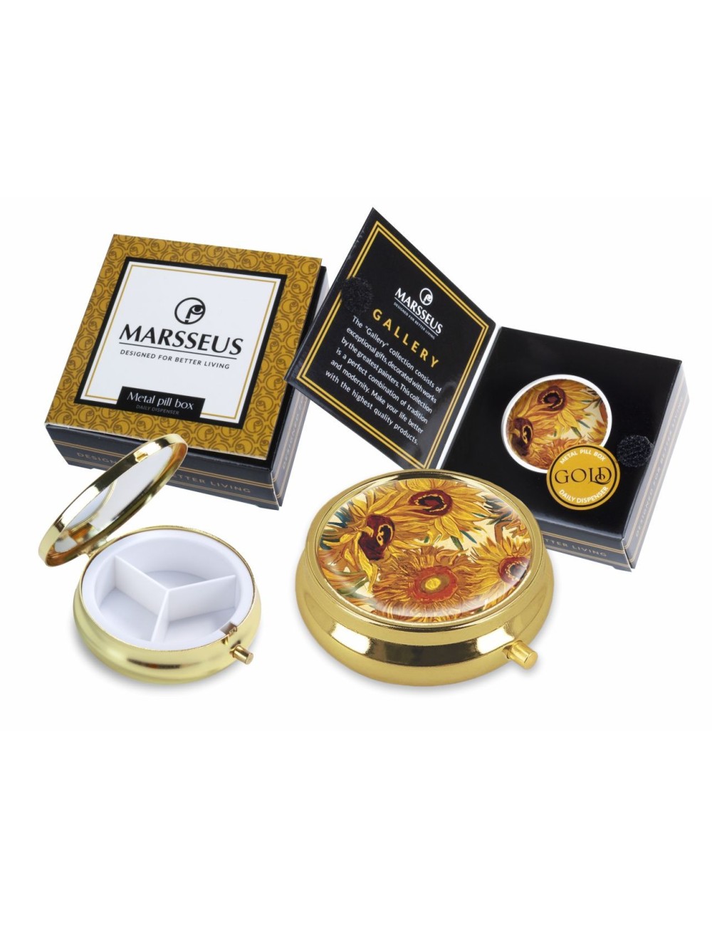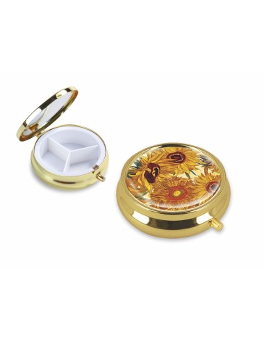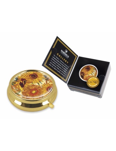 Pocket box with mirror inspired by Vincent van Gogh's work "Sunflowers". Packaged in a decorative gift box. Diameter 6 cm