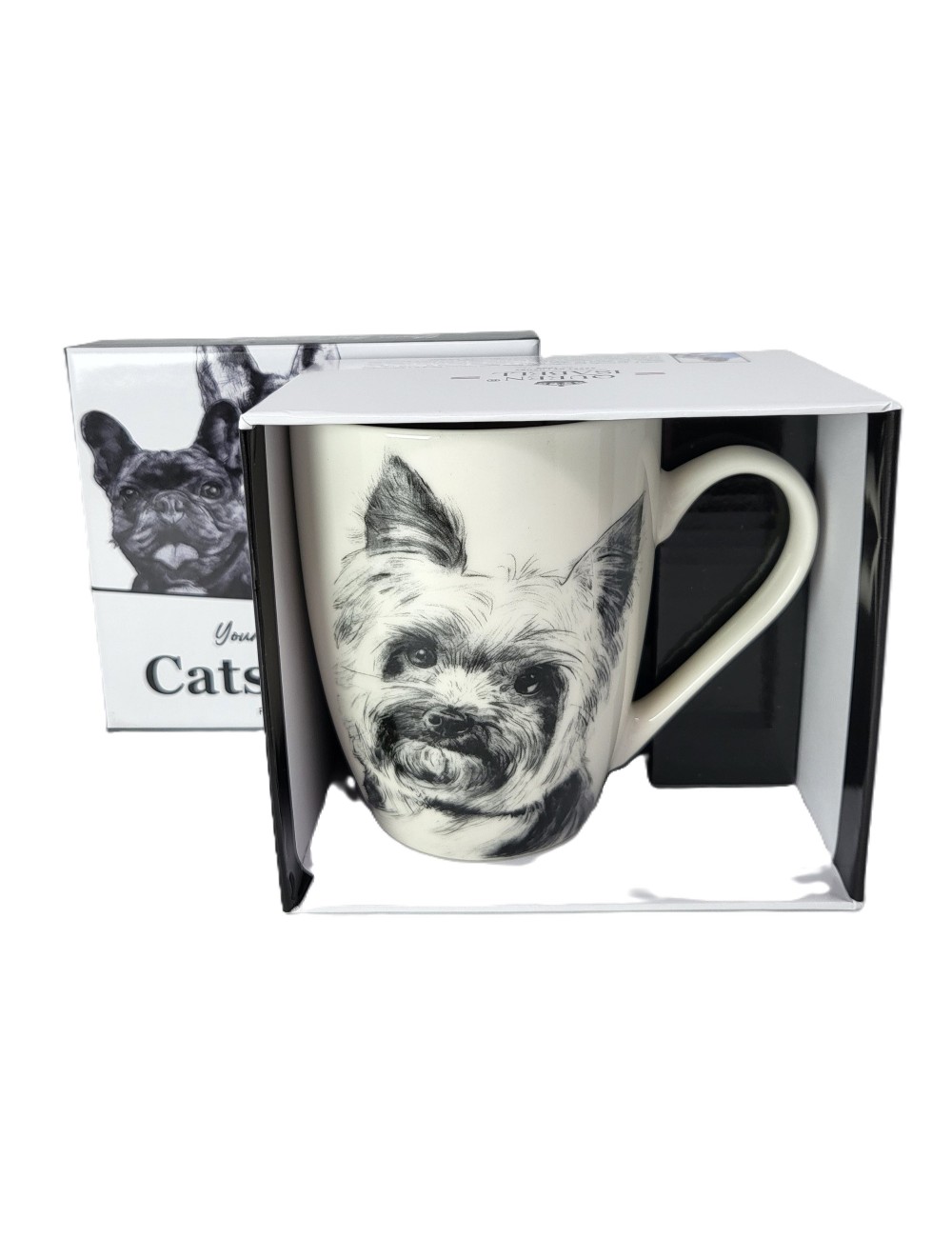 Mug made of porcelain with an image of a yorkie dog. Packed in a gift box. Capacity: 350 ml