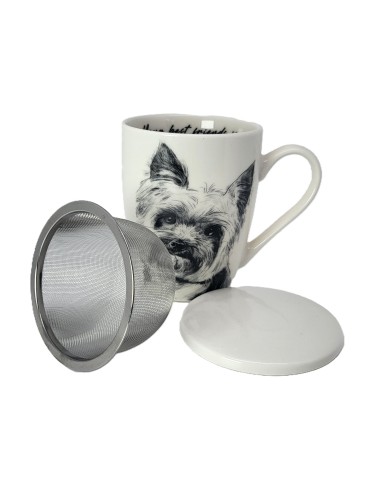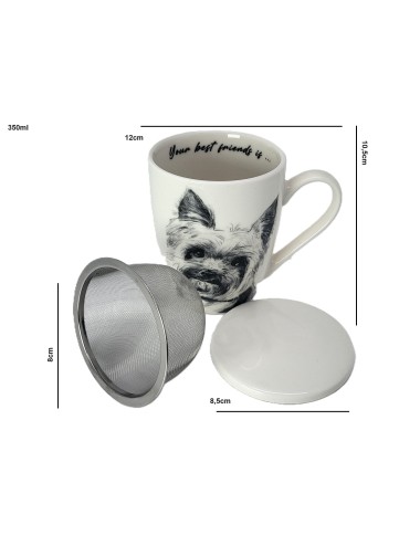 Mug and bowl made of porcelain with an image of a yorkie dog. Packed in a gift box. Capacity: 350 ml *2