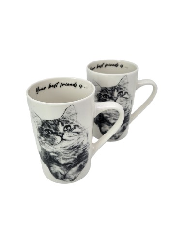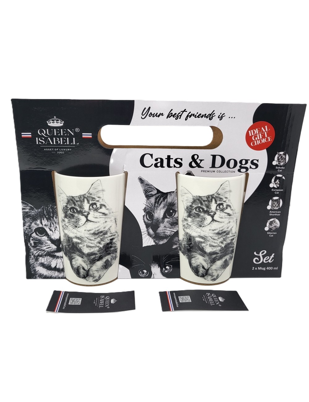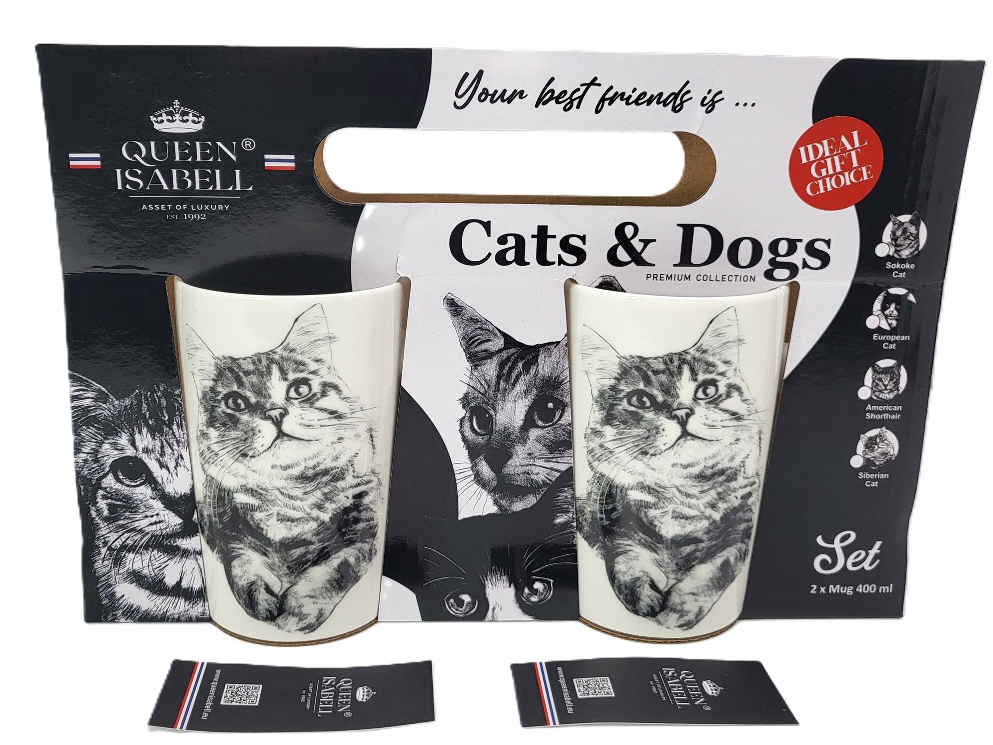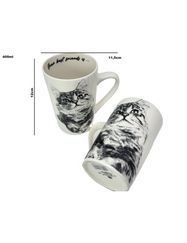 Mug with brewer and lid, made of porcelain with an image of a Siberian cat. Packed in a gift box. Capacity: 350 ml