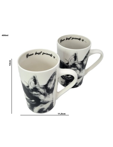 Mug with brewer and lid, made of porcelain with an image of a German Shepherd Dog. Packed in a gift box. Capacity: 350 ml