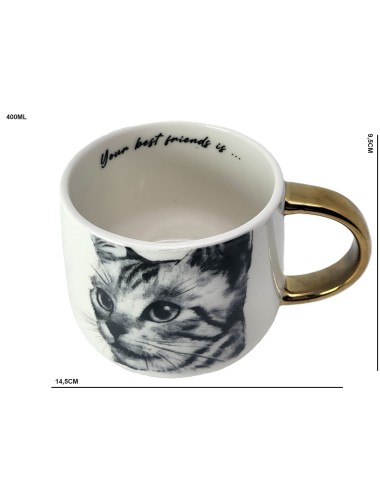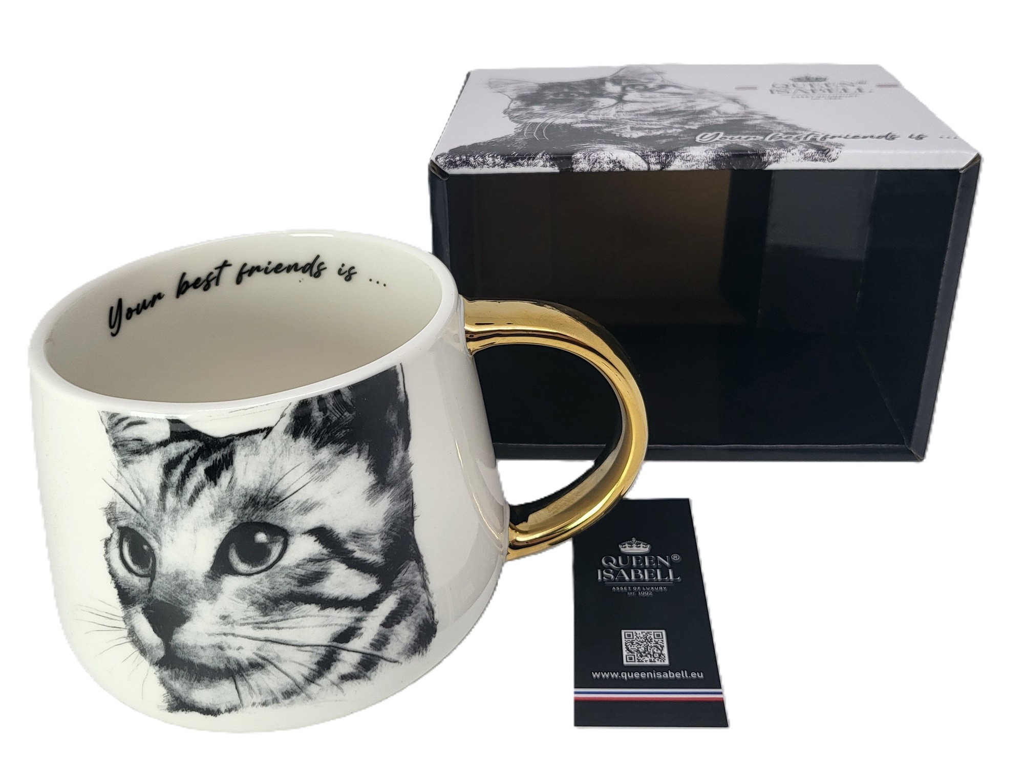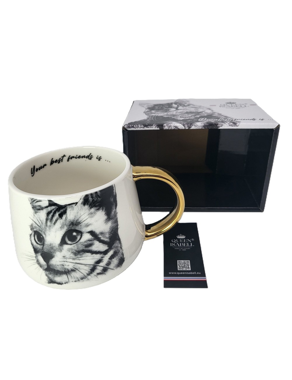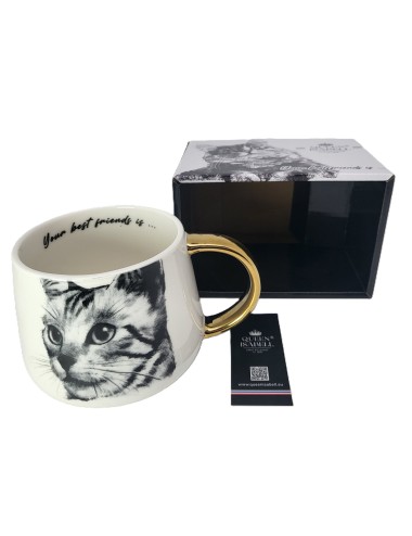 Large mug with brewer and lid, made of porcelain with an image of a sokoke cat. Packed in a gift box. Capacity: 350 ml