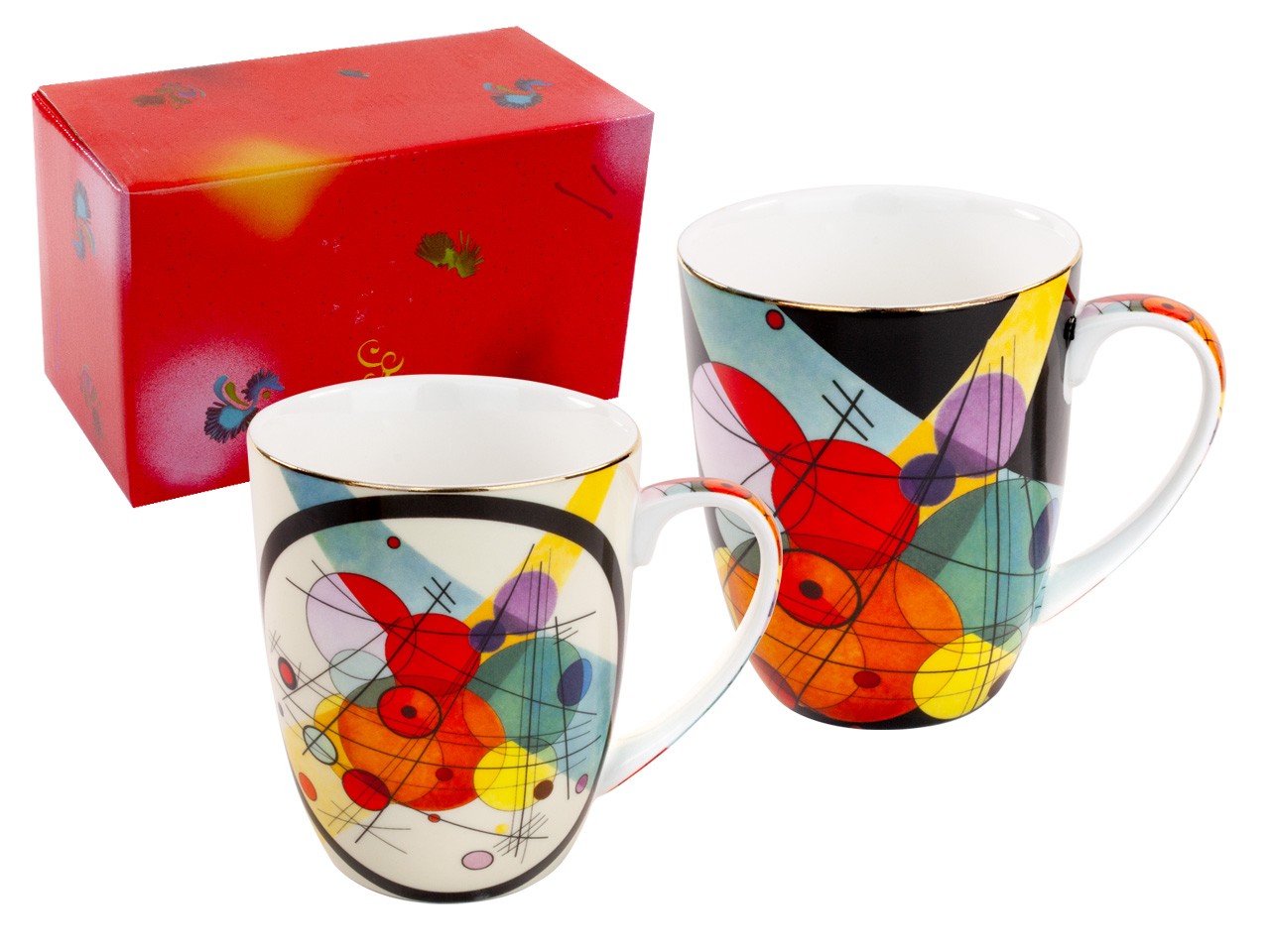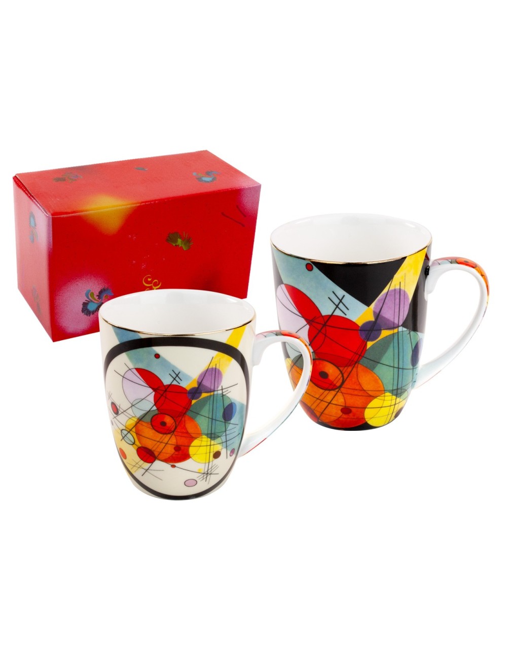 Zestaw 2 eleganckich kubków inspirowanych dziełami wielkiego malarza Kandinsky'ego. Zapakowany w ozdobne opakowanie prezentowe. Pojemność 400 ml