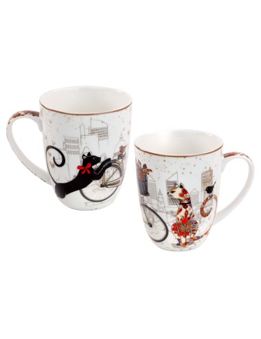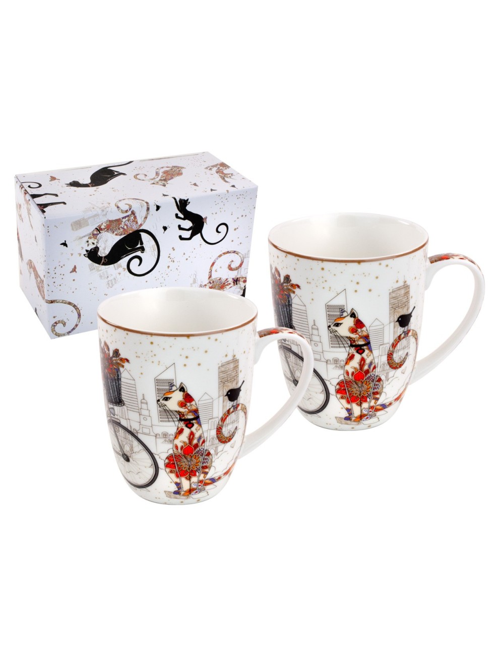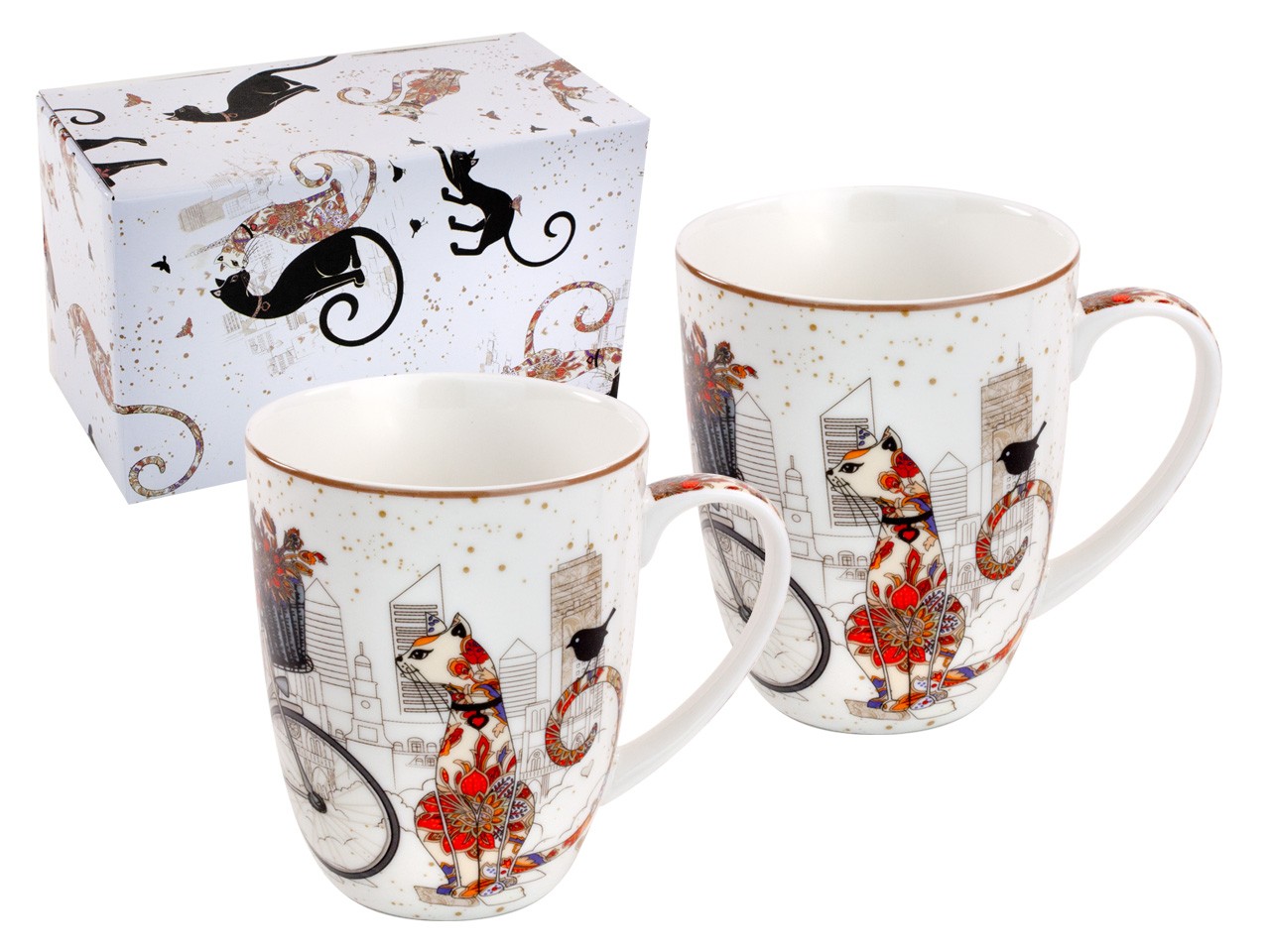 Zestaw 2 kubków z motywem uroczych kotków. Zapakowane w ozdobne opakowanie prezentowe. Pojemność 2*420 ml