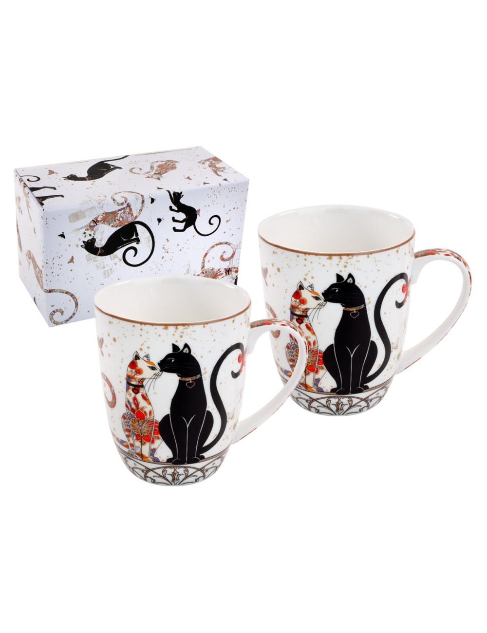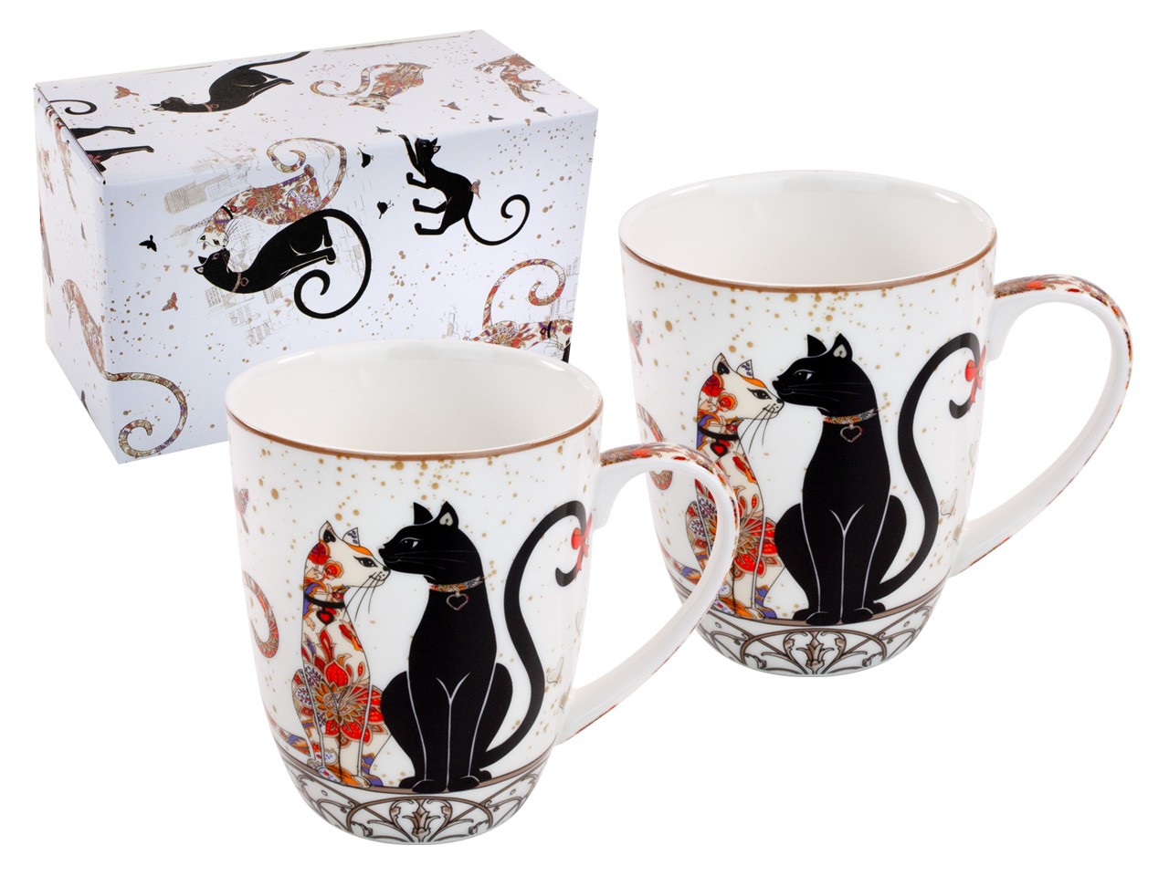 Zestaw 2 kubków z motywem uroczych kotków. Zapakowane w ozdobne opakowanie prezentowe. Pojemność 2*420 ml