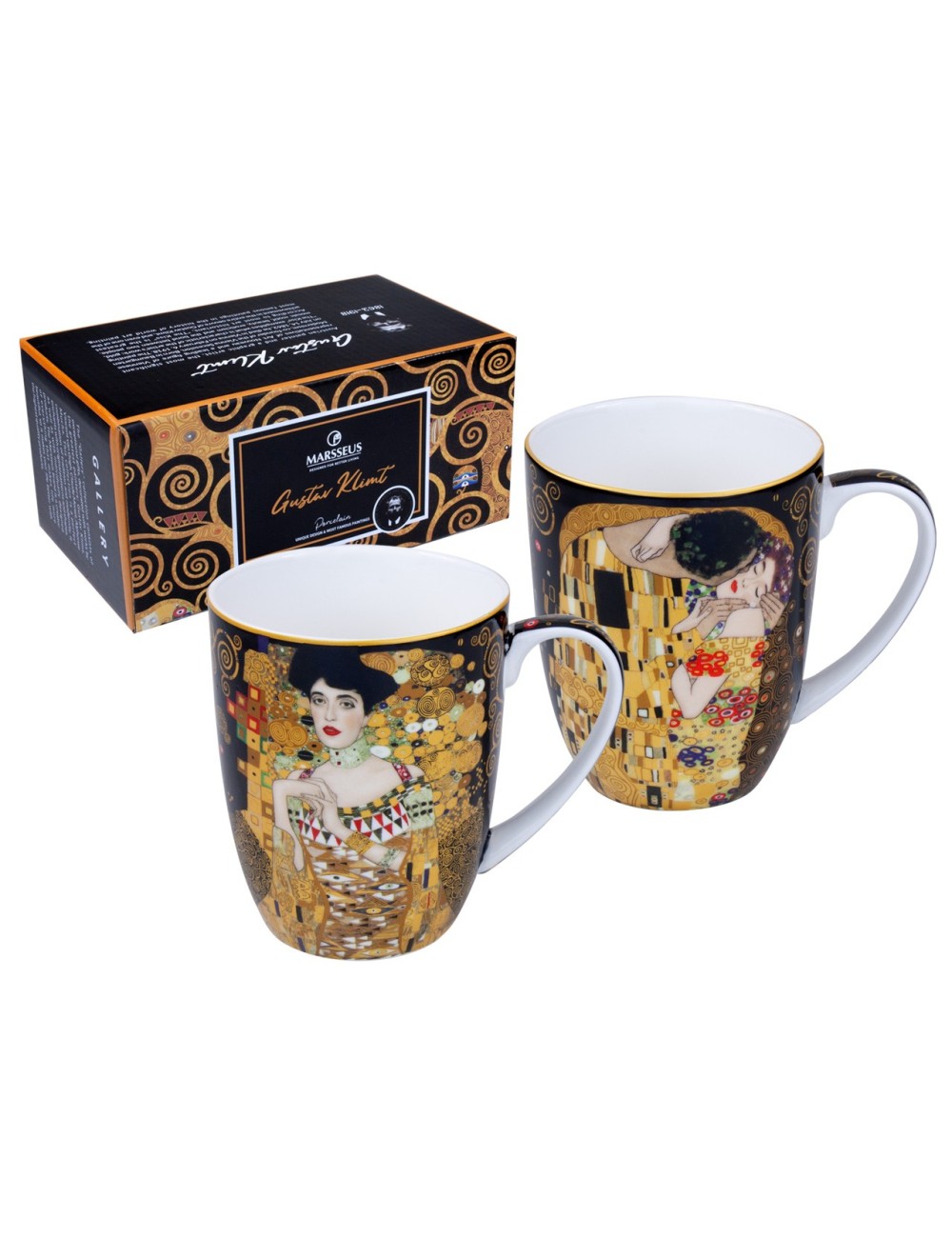 Zestaw dwóch eleganckich kubków inspirowany pracami Gustawa Klimta "Pocałunek" oraz "Adele". Zapakowany w ozdobne opakowanie prezentowe. Pojemność 400 ml*2