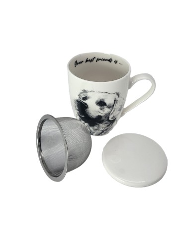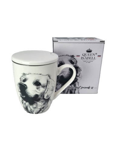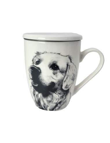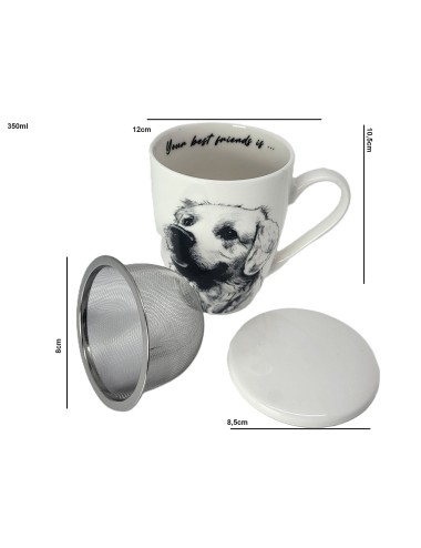 Kubek z zaparzaczem i przykrywką, wykonany z porcelany z wizerunkiem psa rasy labrador. Zapakowany w opakowanie prezentowe. Pojemność: 350 ml