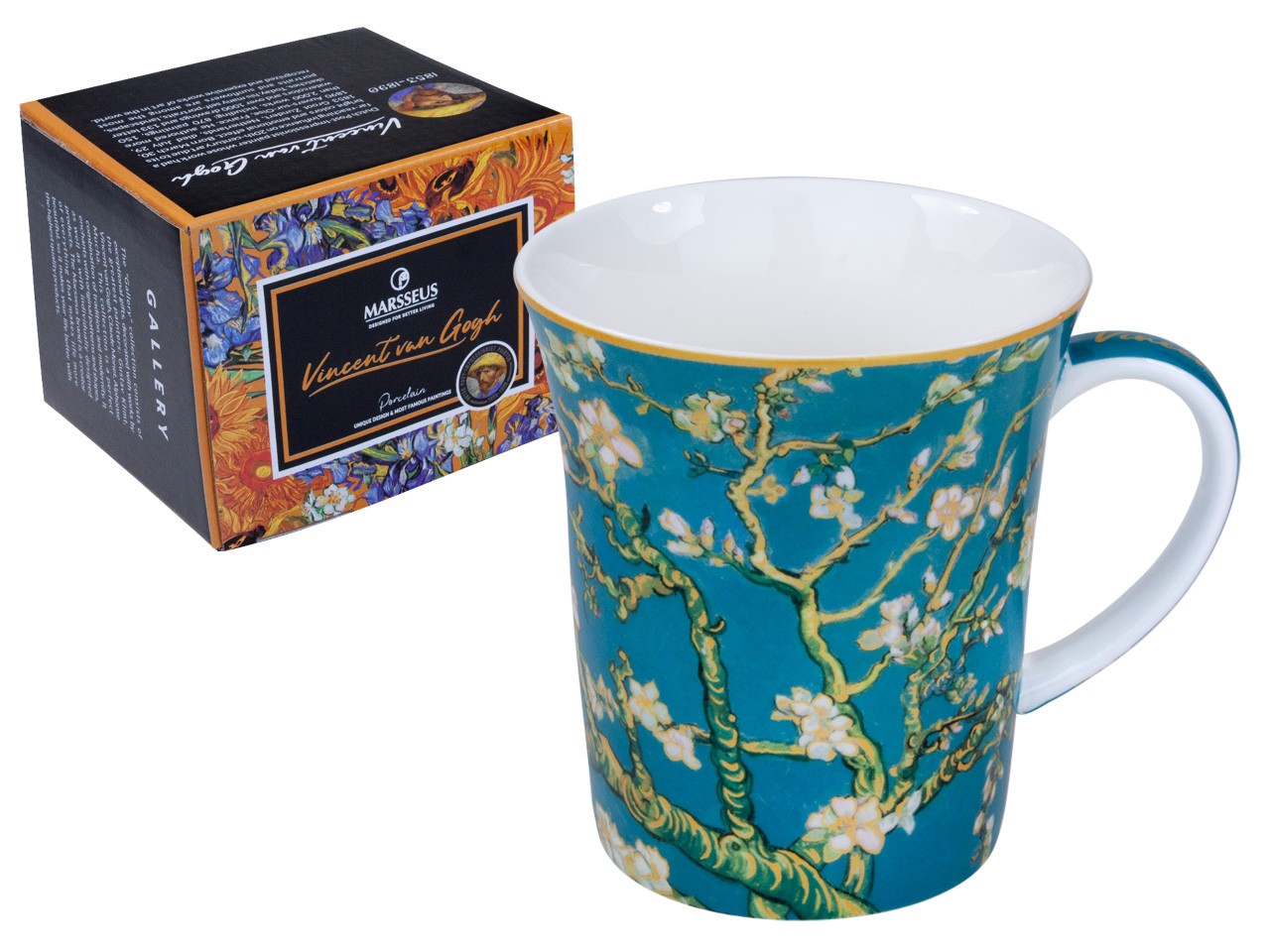 Elegancki kubek inspirowany pracą Vincenta Van Gogha "Kwitnący migdałowiec". Zapakowany w ozdobne opakowanie prezentowe. Pojemność 420 ml