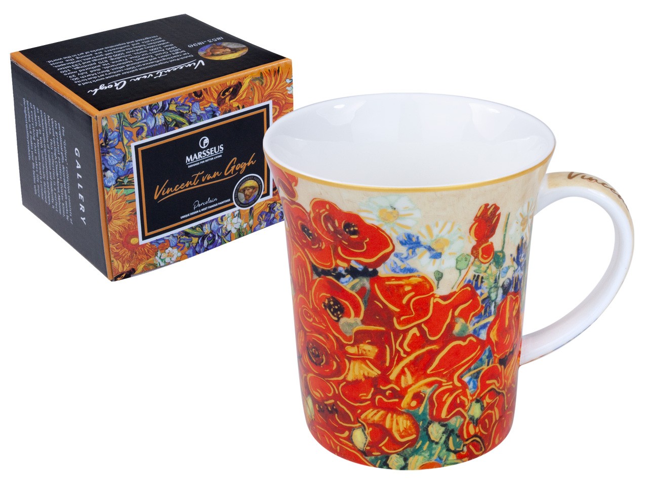 Elegancki kubek inspirowany pracą Vincenta Van Gogha "Maki". Zapakowany w ozdobne opakowanie prezentowe. Pojemność 420 ml