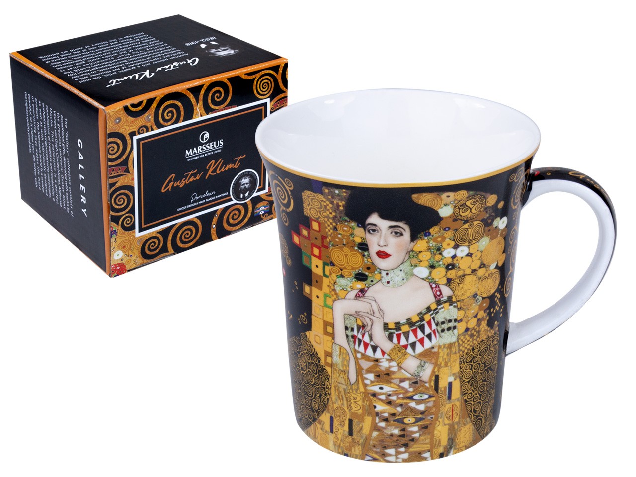 Elegancki kubek inspirowany pracą Gustava Klimta "Adele". Zapakowany w ozdobne opakowanie prezenetowe. Pojemność 420 ml