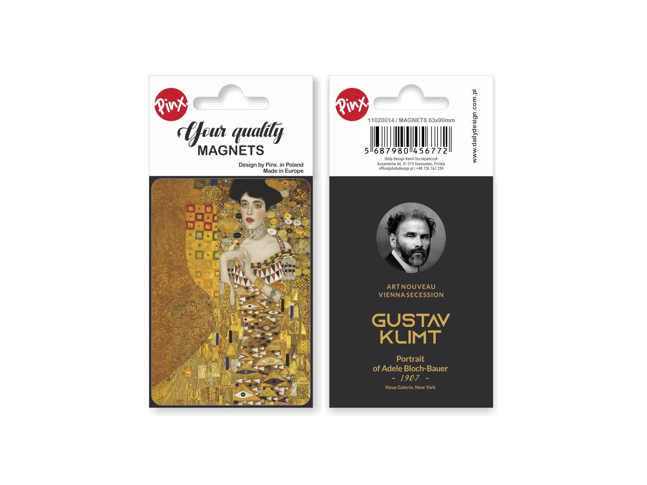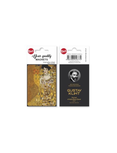 Prostokątny magnes inspirowany dziełem wielkiego malarza Gustava Klimta "Adele". Magnes został wykonany z wysokiej jakości materiałów, pokryty folią zabezpieczającą. Zapakowany w estetyczną folię z kartonikiem. Wymiary 6,3x9 cm