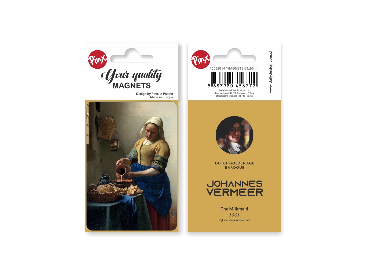 Prostokątny magnes inspirowany dziełem wielkiego malarza Johannesa Vermeer'a "Mleczarka". Magnes został wykonany z wysokiej jakości materiałów, pokryty folią zabezpieczającą. Zapakowany w estetyczną folię z kartonikiem. Wymiary 6,3x9 cm
