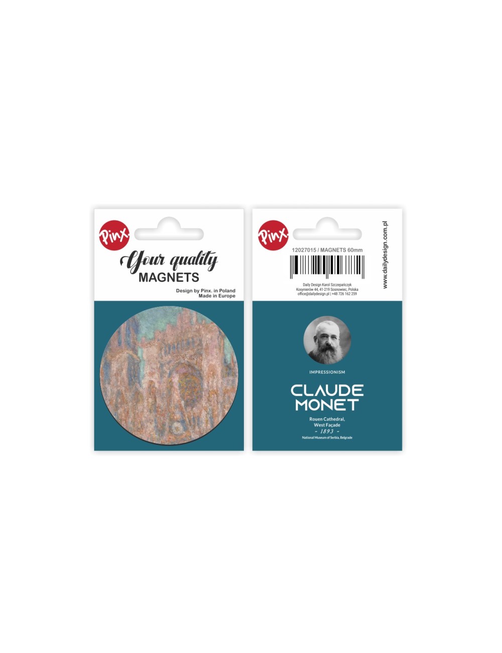 Okrągły magnes inspirowany dziełem wielkiego malarza Claude’a Moneta"Katedra Rouen". Magnes został wykonany z wysokiej jakości materiałów, pokryty folią zabezpieczającą. Zapakowany w estetyczną folię z kartonikiem. Średnica 6 cm