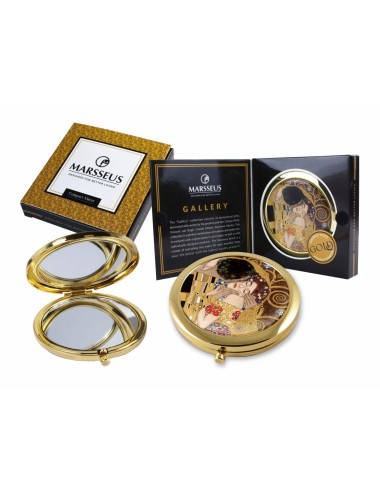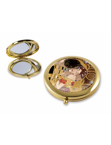 Kieszonkowe składane lusterko inspirowane pracą Gustava Klimta "Pocałunek". Zapakowane w ozdobne pudełko prezentowe. Średnica 7 cm