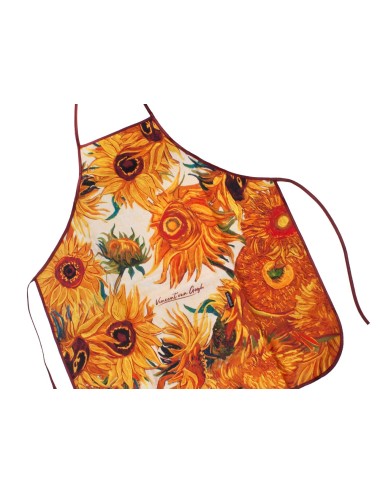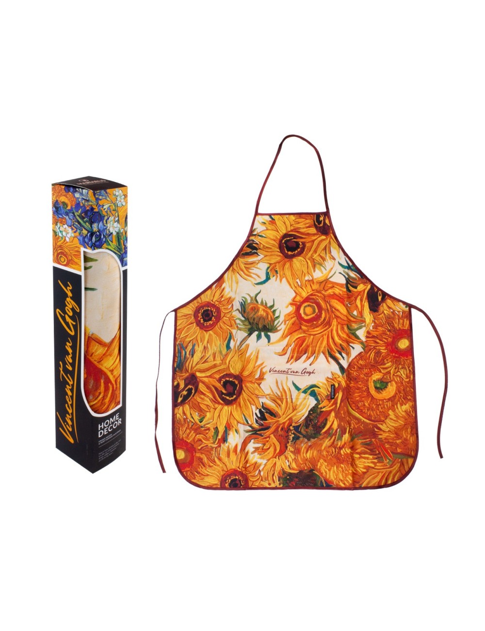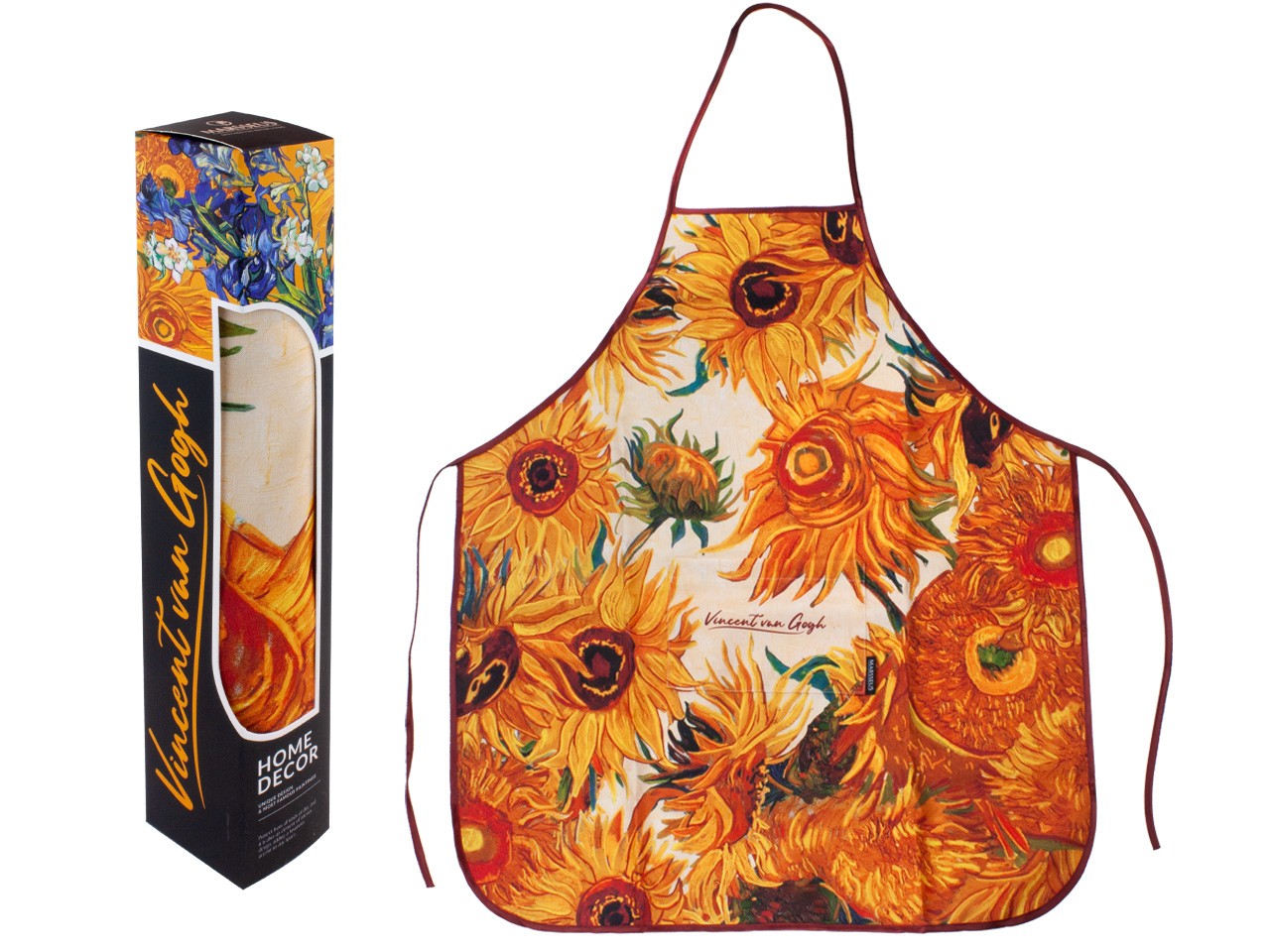 Fartuszek kuchenny z niezwykłym motywem pracy Vincenta van Gogha "Słoneczniki". Zapakowany w ozdobne opakowanie prezentowe. Wymiary 65x73 cm