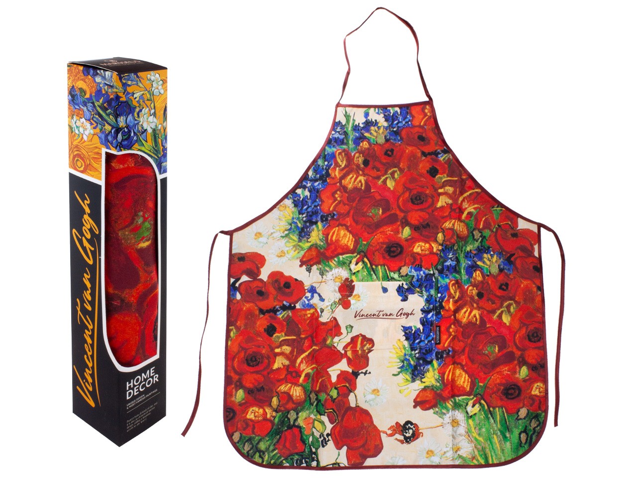 Fartuszek kuchenny z niezwykłym motywem pracy Vincenta van Gogha "Maki". Zapakowany w ozdobne opakowanie prezentowe. Wymiary 65x73 cm