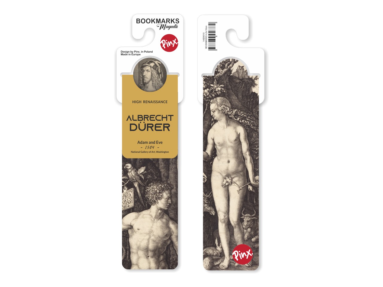 Zakładka magnetyczna inspirowana dziełem wielkiego malarza Albrechta Dürera "Adam i Ewa" . Zakładka wykonana z wysokiej jakości materiałów, pokryta folią zabezpieczającą. Zakładka w zestawie z haczykiem. Wymiary 5x19 cm