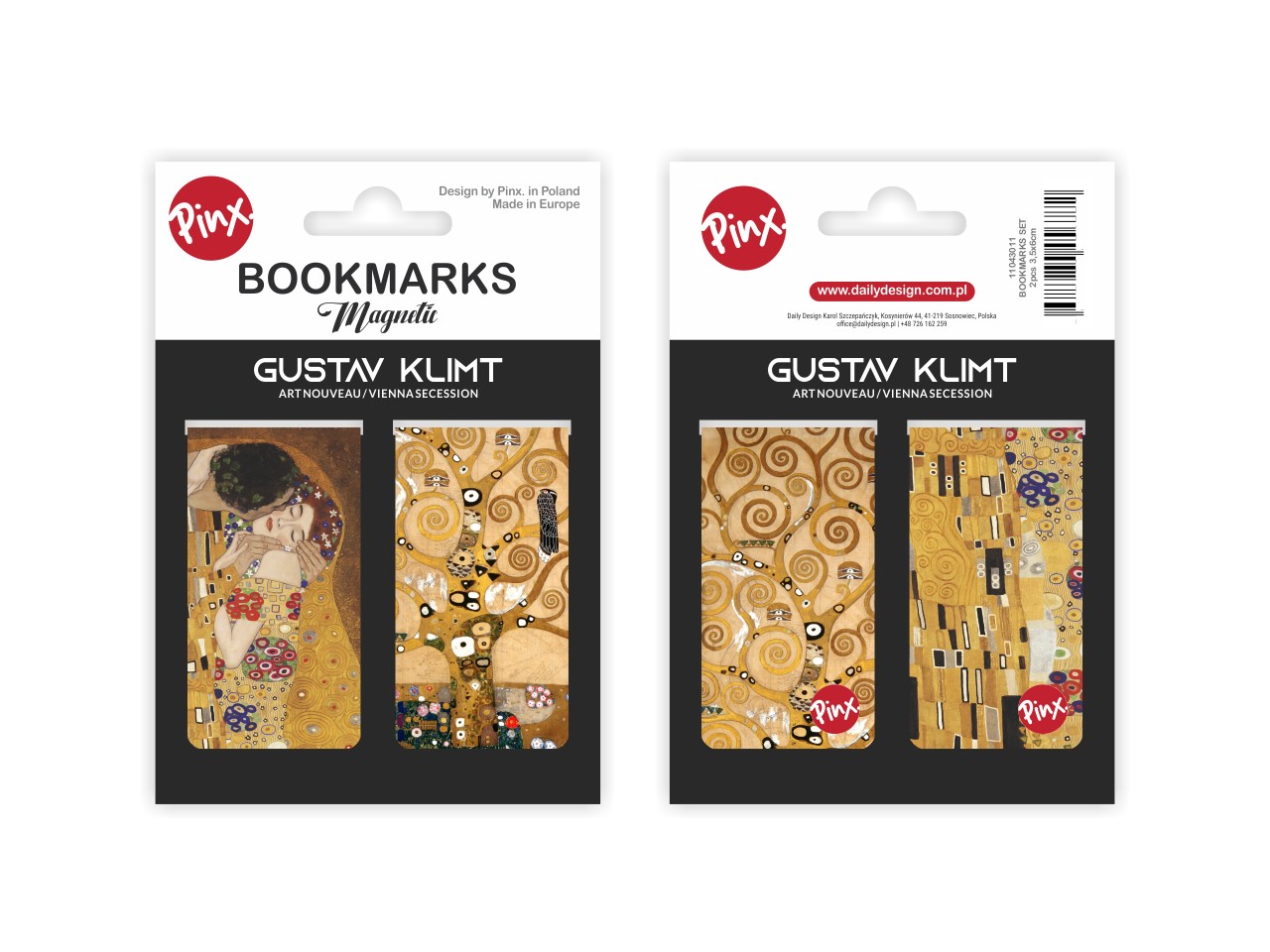 Zestaw dwóch zakładek magnetycznych. Inspirowane dziełami wielkiego malarza Gustava Klimta "Pocałunek" oraz "Drzewo życia". Zapakowane w estetyczną folię z kartonikiem. Wymiary 3,5x6 cm *2