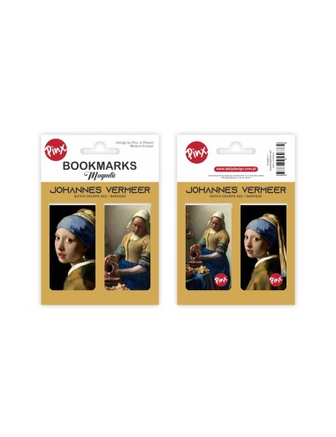 Zestaw dwóch zakładek magnetycznych. Inspirowane dziełami wielkiego malarza Johannesa Vermeer'a "Dziewczyna z perłą" oraz "Mleczarka". Zapakowane w estetyczną folię z kartonikiem. Wymiary 3,5x6 cm *2