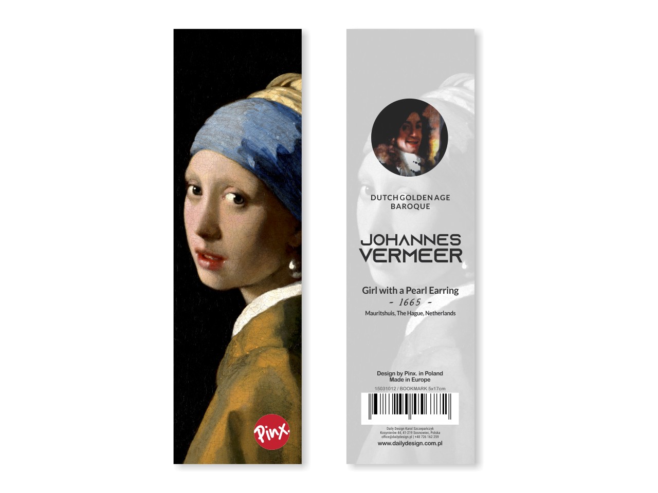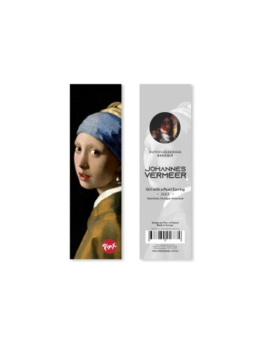 Zakładka do książek inspirowana dziełem wielkiego malarza Johannesa Vermeer'a "Dziewczyna z perłą". Zakładka wykonana z wysokiej jakości materiałów, pokryta folią zabezpieczającą. Zakładka zapakowana w estetyczną foliową torebkę. Wymiary 5x17 cm